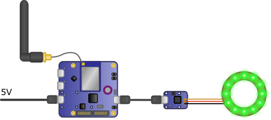 Pour cela on propose d'utiliser un YoctoHub-Wireless-g pour se connecter, grâce au mode HTTP callback, à un script PHP placé sur un serveur public. Si YoctoHub-Wireless-g arrive à se connecter sur le serveur en question, c'est que le réseau marche, dans le cas contraire c'est que le réseau est cassé. Pour signaler l'état du réseau, simple anneau de LEDs RGB NEOPIXEL de Adafruit piloté par un Yocto-Color-V2 fera l'affaire.