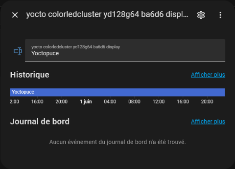 Notez que, comme on avait les mains dans le cambouis, on en a profité pour ajouter d'autres fonctionnalités à cette extension, comme le support pour les Yocto-Display. Désormais, l'intégration ajoute une entité Text qui permet d'afficher une valeur sur les Yocto-Display et Yocto-MaxiDisplay.