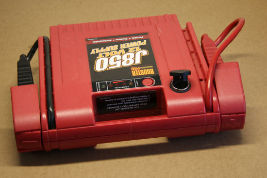 Pour alimenter tout ça, on a choisi d'utiliser une de ces batteries portables qui servent à faire redémarrer votre voiture quand sa propre batterie est à plat. Cet engin, conçu pour être transporté facilement, fournit du 12V et dispose même d'une prise allume-cigare.
