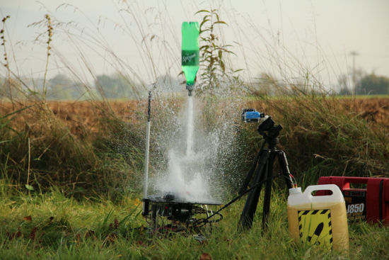 Pour lancer une fusée, on remplit partiellement la bouteille, on la fixe à la renverse sur le lanceur, on pompe comme un fou, puis on déclenche le déverrouillage de l'embout, et la fusée part. Simple comme bonjour.