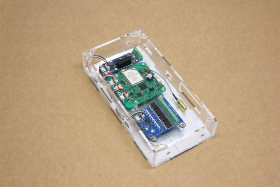 La partie électronique. Le YoctoHub-Wireless est un modèle de pré-série, d'où la couleur verte