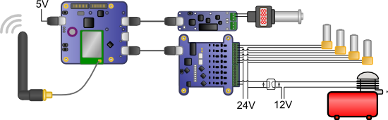 On a donc dû utiliser deux convertisseurs, un 12V vers 5V pour les modules Yoctopuce et un 12V vers 24V pour les vannes et le relais de contrôle du compresseur.
