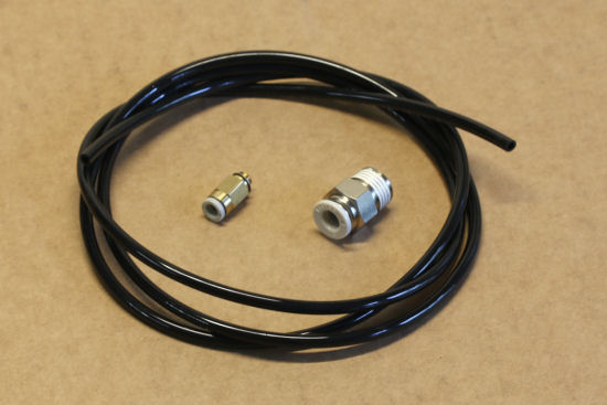 La partie hydro-pneumatique est réalisée avec du tuyau à air comprimé en polyuréthane de 4mm et on a utilisé des raccords instantanés partout où c'était possible.