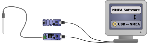 Un client désire utiliser nos capteurs avec un logiciel destiné à des capteurs sur TCP/IP au standard NMEA (National Marine Electronic Association). En gros, un capteur NMEA envoie spontanément ses mesures à intervalle régulier, sous forme d'une ligne de texte avec des valeurs séparées par des virgules. La solution la plus simple consiste donc à faire une petite passerelle TCP qui lit n'import lequel de nos capteurs USB et envoie périodiquement les mesures sur TCP à chaque client connecté. Comme c'est une approche qui peut être utile à d'autres, nous en avons fait un petit code d'exemple.