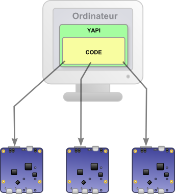 Dans une application traditionnelle c'est L'API qui se connecte à plusieurs YoctoHub