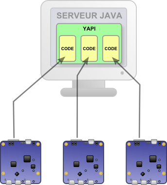 3. C'est le YoctoHub qui détermine (en se connectant au serveur) quand l’application se lance. Il est possible (et même très probable) que deux YoctoHub se connectent au même moment à l’application. Donc si plusieurs YoctoHub sont configurés pour utiliser l’application, il faut impérativement s’assurer que notre application supporte la concurrence.