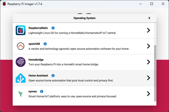 Une image de Home Assistant OS est directement installée depuis l'outils Raspberry Pi Imager