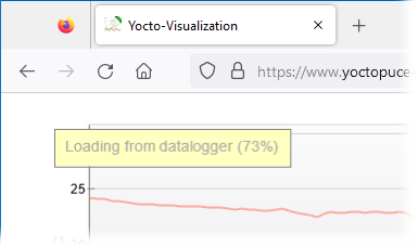 La version native de Yocto-Visualization essaie de charger le contenu de l'enregistreur de données de tous les capteurs qu'elle détecte, l'idée étant de pouvoir afficher les données aussi vite que possible en cas de besoin. On s'est vite rendu compte que cette méthode n'était pas très raisonnable dans le cas où Yocto-Visualization (for web) est installé sur une instance de VirtualHub (for web) parce qu'une telle instance peut très facilement contenir des dizaines de capteurs avec chacun un enregistreur de données susceptible de contenir des mois de données. Tenter de charger en parallèle le contenu de tous ces enregistreurs de données au démarrage de l'application peut vite devenir un problème, en particulier sur les machines peu puissantes comme des tablettes. C'est pourquoi à partir de la version 52602 Yocto-Visualization (for web) charge le contenu des enregistreurs seulement quand il en a besoin.