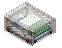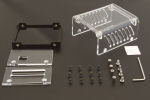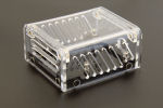 Ce boîtier vous permettra de protéger votre Yocto-MaxiRelay. Il est constitué d'une base munie d'inserts filetés en laiton, de deux façades et d'un couvercle en verre acrylique (PMMA). L'ensemble est tenu fermé par des vis métriques. Le module Yocto-MaxiRelay est maintenu dans le boîtier par quatre entretoises métalliques.