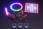 Ce module est vendu avec deux LEDs RGB, mais pour tout vous dire, il peut en piloter jusqu'à 146, pour autant que ce soient des LEDs WS2812B, WS2812C, SK6812 , WS2811 (RGB) ou SK6812RGBW (RGBW). Vous trouverez facilement dans le commerce des panneaux basés sur ces LEDs, par exemple chez Adafruit. Si vous cherchez désespérément un driver de NEOPIXEL USB, alors le Yocto-Color-V2 est ce qu'il vous faut :-)