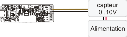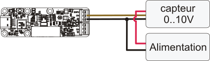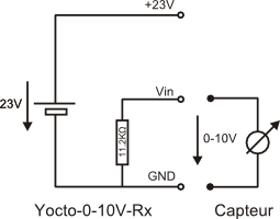 Câblage d'un capteur 3 fils, alimenté par le Yocto-0-10V-Rx-C