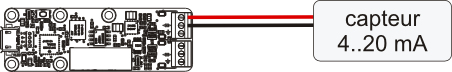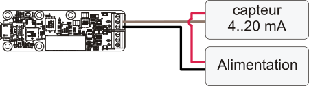 Câblage d'un capteur 2 fils, alimenté par la boucle de courant.