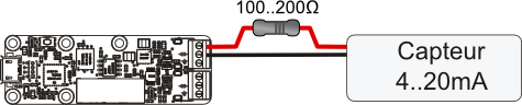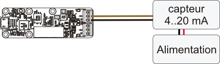 Câblage d'un capteur 4 fils, avec alimentation indépendante.