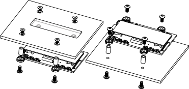 Vous pouvez monter directement le module sur le hub à l'aide d'un jeu de vis et entretoises, et les connecter à l'aide de connecteurs board-to-board au pas 1.27mm. Pour éviter les court-circuits, soudez de préférence le connecteur femelle sur le hub et le connecteur mâle sur le Yocto-Display.