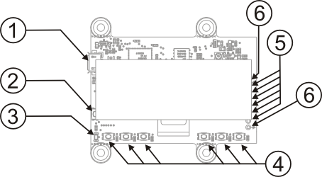 | 1: | Prise USB micro-B | 4: | anButtons test 1 à 6 |