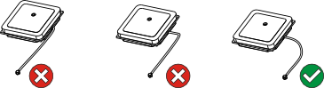 Le Yocto-GPS est livré avec un antenne active céramique au bout d'un câble coaxial d'une dizaine de centimètres terminé par un connecteur U.FL. Ce genre de câble est assez fragile: évitez de le plier à angle droit, vous pourriez l'endommager. Soyez particulièrement attentif à la jonction antenne-câble.
