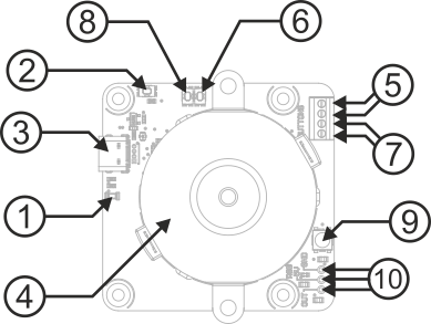 | 5: | Entrée 1 | 10: | Sortie pour LEDs RGB |