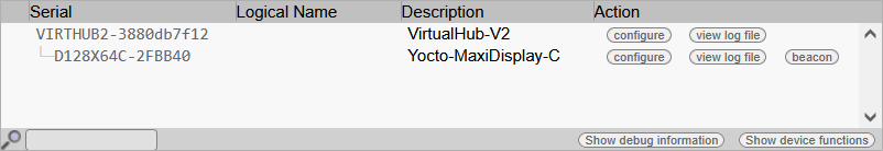 Après une mise à jour, les fenêtres correspondant au Yocto-MaxiDisplay-C dans l'interface du VirtualHub rapportent des erreurs. C'est peut-être un bug, mais il y a plus de chances pour que votre navigateur web ait gardé en mémoire cache une partie du code de l'interface du firmware précédent. Faites un shift-reload ou videz le cache de votre navigateur et tout devrait rentrer dans l'ordre.