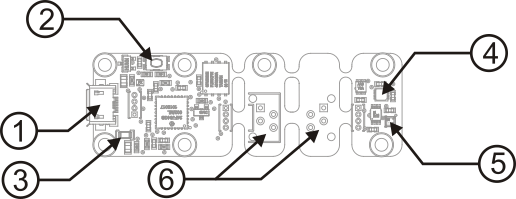 | 3: | Yocto-led | 6: | Emplacements pour les embases Picoflex |