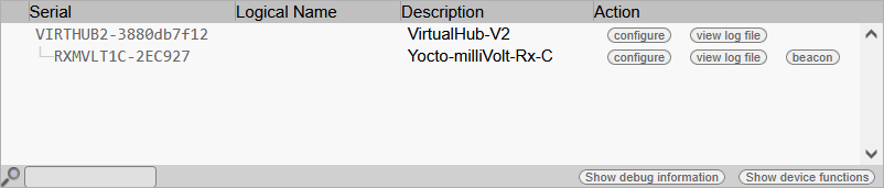 La première chose à vérifier est le bon fonctionnement de votre module: cliquez sur le numéro de série correspondant à votre module, et une fenêtre résumant les propriétés de votre Yocto-milliVolt-Rx-C.