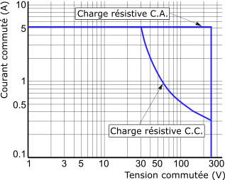 Notez que la capacité de commutation et la durée de vie du relais ne sont spécifiées que pour les charges purement résistives.