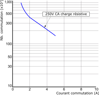 La durée de vie des contacts dépend aussi du courant et de la tension commutée: