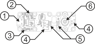 | 1: | Prise USB micro-B | 4: | Emplacements pour les embases Picoflex |