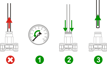 Le Yocto-Pressure-C est équipé d'un embout rapide de 4mm qui permet de le raccorder très facilement à un tube de polyéthylène tels que ceux couramment utilisés dans les techniques pneumatiques, mais n'importe quel tube avec un diamètre externe de 4mm conviendra. Pour connecter le tube au Yocto-Pressure-C, enfoncez simplement le tube dans l'embout rapide du Yocto-Pressure-C. Pour déconnecter le tube, ne forcez surtout pas dessus: