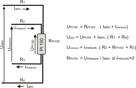 Pt100 3 fils: l'absence d'un fil est automatiquement compensée.