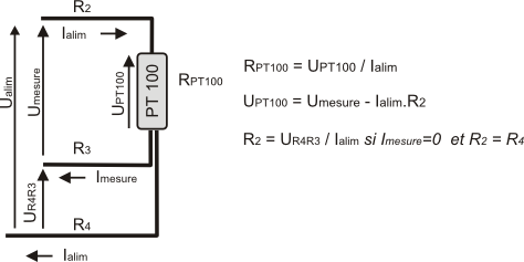 Pt100 3 fils: l'absence d'un fil est automatiquement compensée.