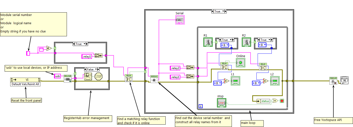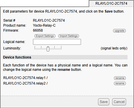 Les seules fonctions du module Yocto-Relay-C correspondent aux relais embarqués, dont le nom hardware est "relay1" et "relay2".