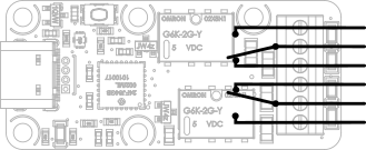 Si vous désirez raccorder le module Yocto-Relay-C à un Micro-hub USB ou a un YoctoHub en évitant l'encombrement d'un vrai cable USB, vous pouvez utiliser les 4 pads au pas 1.27mm juste derrière le connecteur USB. Vous avez alors deux possibilités.