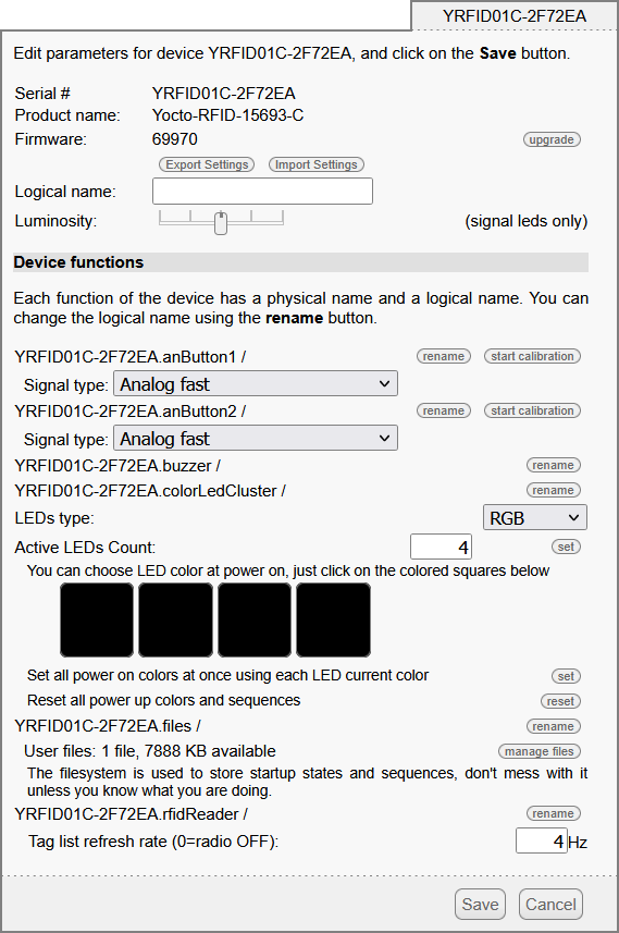 Après une mise à jour, les fenêtres correspondant au Yocto-RFID-15693-C dans l'interface du VirtualHub rapportent des erreurs. C'est peut-être un bug, mais il y a plus de chances pour que votre navigateur web ait gardé en mémoire cache une partie du code de l'interface du firmware précédent. Faites un shift-reload ou videz le cache de votre navigateur et tout devrait rentrer dans l'ordre.
