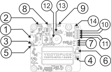 | 5: | LED témoin activité RFID | 12: | Buzzer interne | |