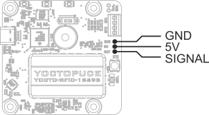 Le module Yocto-RFID-15693-C met à disposition 2 entrées auxquelles il est possible de connecter tout type de capteur résistif tel qu'un interrupteur, boutons-poussoir, potentiomètres, photo-transistor, contact reed, etc. Vous pouvez utiliser n'importe quelle valeur de potentiomètre entre 1KΩ et 200KΩ