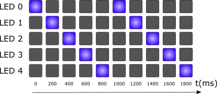 Démarre l'exécution d'une séquence : toutes les LED liées à cette séquence vont commencer à l'exécuter en boucle. | ||||||||||||