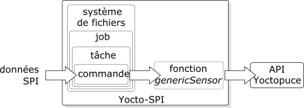 En plus d'offrir une interface communication SPI octet-par-octet, le Yocto-SPI-C est capable d'interroger et d'analyser de manière autonome un appareil quelconque doté d'une interface SPI pour ensuite présenter les résultats à la manière d'un capteur Yoctopuce. En d'autre termes, le Yocto-SPI-C est capable de transformer n'importe quel capteur équipé d'une interface SPI en l'équivalent software d'un capteur Yoctopuce, datalogger compris.