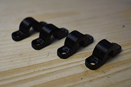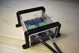 The high voltage cables as well as the USB cable are mounted on the workbench with holders that we printed specifically for the correct cable diameter: