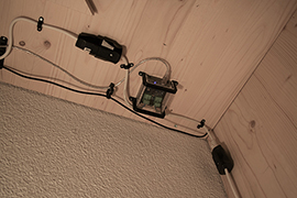 We then mount the Yocto-Watt and its enclosure under the workbench with four wood screws: