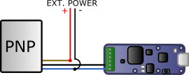 3. To connect the (+) of the external power supply and the sensor brown wire on the external Power (pwr) input
