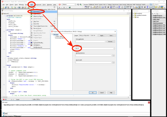 When the program has identified the relay, it switches the relay state according to the value of the second parameter on the command line.