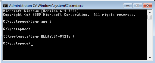 If there is the correct number of parameters, the code uses the first one (args[0]) as identifier of the module to be used and the second one (args[1]) as the state into which it must switch the relay. If the module name is "ANY", it then uses the YRelay.FirstRelay() function to obtain the first available relay. Otherwise, it uses the YRelay.FindRelay() function to find the relay, assuming that the parameter corresponds to the serial number or to the logical name of the module. If you find this paragraph somewhat confusing, carefully reading this post should help you to better understand.