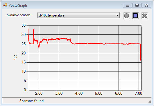 To show you how user-friendly the data logger has become, we are going to write together a short C# application that traces the data history of a Yoctopuce sensor, then updates the graph in real time. The application is quite interesting because it takes advantage of a number of features that appeared with the new API.