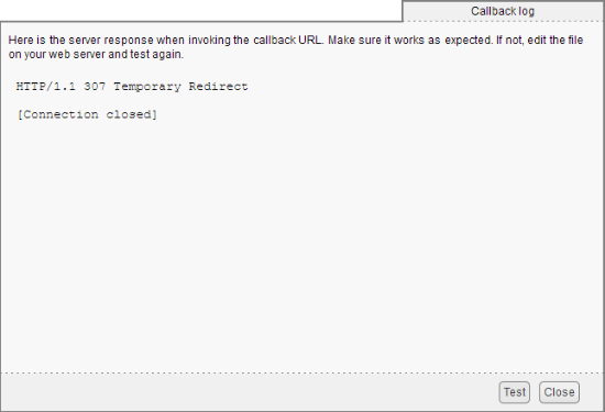 By default, Symfony embedded web server forces a redirection of all the HTTP traffic on HTTPS. So, if you don't use the --allow-http option, the YoctoHubs can't connect to the callback, and when testing, the following message is displayed: