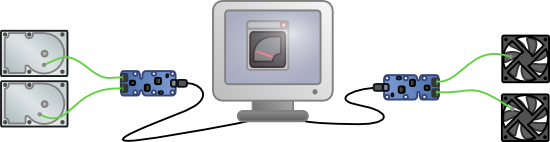 Temperature measurement inside the computer, using thermocouples.