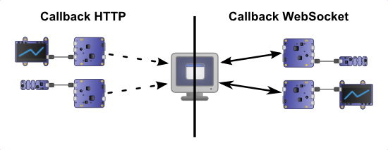 In the opposite to the HTTP callback, WebSocket callbacks enable us to maintain a persistant and truly bidirectional connection with the server