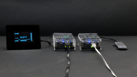 The Yocto-MaxiDisplay and the Yocto-Temperature can be installed in two different buildings