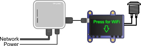 For this application, you just need a MR3020 and a Yocto-MaxiDisplay (or Yocto-Display). The button is wired on one of the analog inputs of the display, and the display is connected by USB to the MR3020.