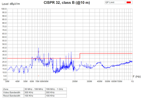 If you are not familiar with that kind of EMI graph, just know that any measure above the red line is a big no no.