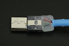 The results are ... enlightening. Most entry-level "USB 2.0" cables that are commercially available, although sometimes sold for more than $10, are not shielded, or are not well shielded, which is about the same. Here is what we can see if we open with a cutter the plastic overmolding around USB connectors: